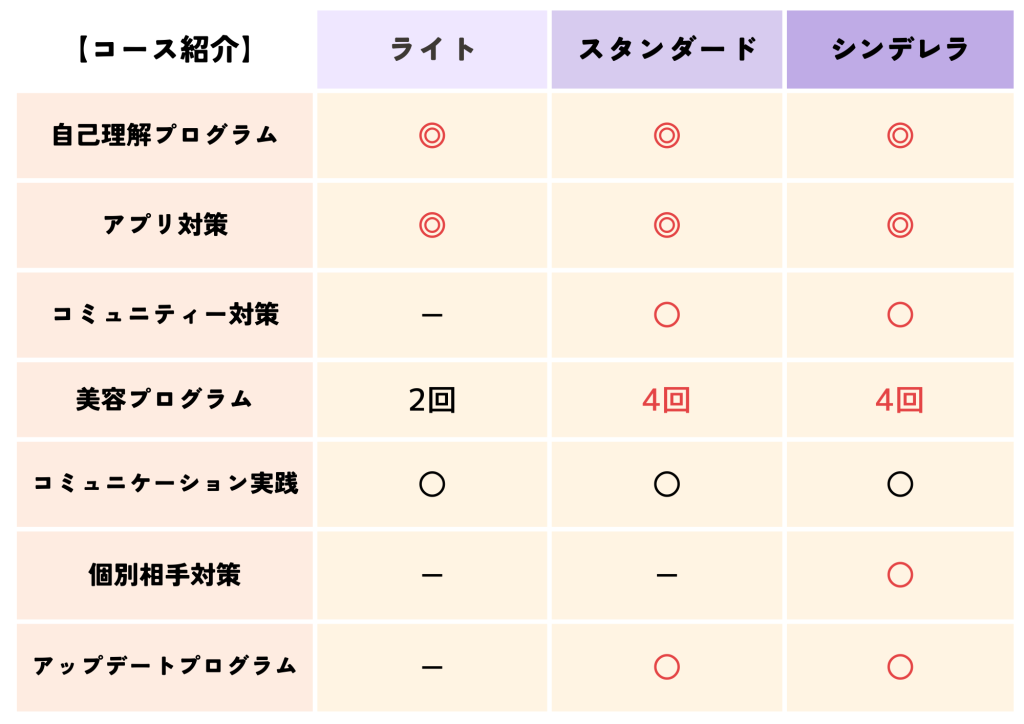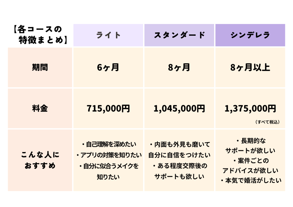 それぞれのコースで提供されるサービス内容や期間が異なるため、自分に最適なコースを選択することが重要です。
