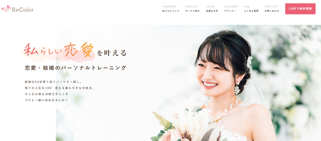 ReColor(リカラー)は、従来の結婚相談所とは異なる「婚活パーソナルトレーニング」という新しいサービスを提供しています。