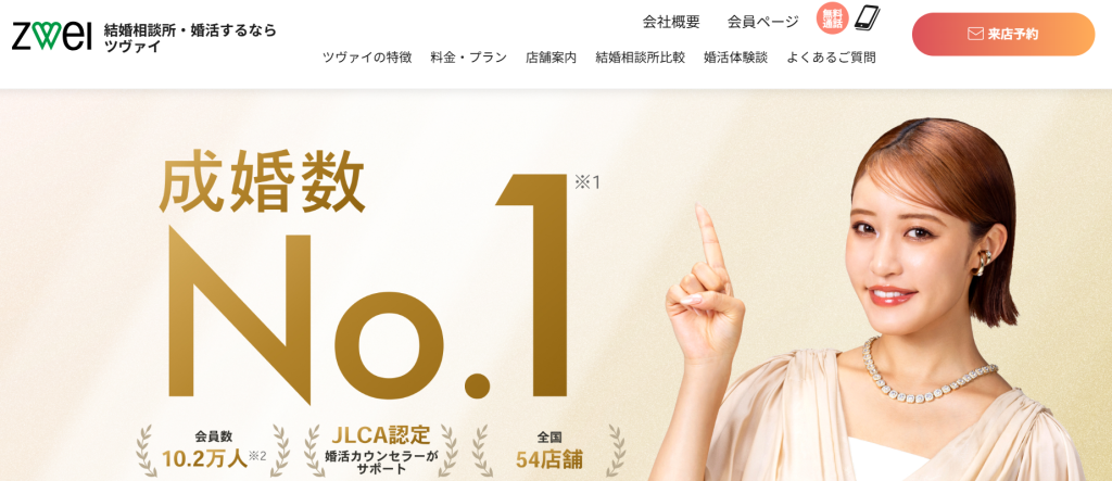 ツヴァイ(ZWEI)は、イオングループが運営する大手結婚相談所で、全国に50店舗以上を展開する実績豊富なサービスです。