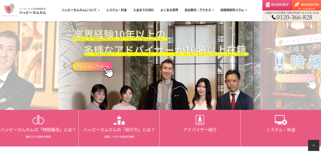 ハッピーカムカムはアットホームな雰囲気を大切にする結婚相談所です。担当者との距離が近く、細かな相談もしやすい点が特長です。会員同士の価値観を重視した紹介を行い、自然な交際につなげます。落ち着いた婚活を望む方や、相談しながら進めたい方に向いています。