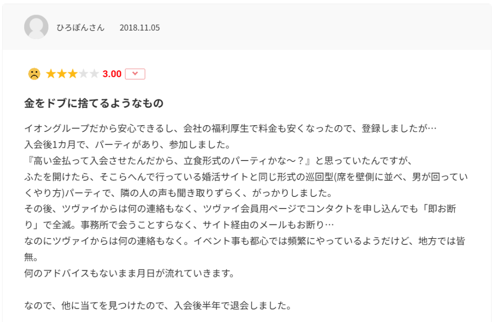 ツヴァイの悪い口コミ・評判