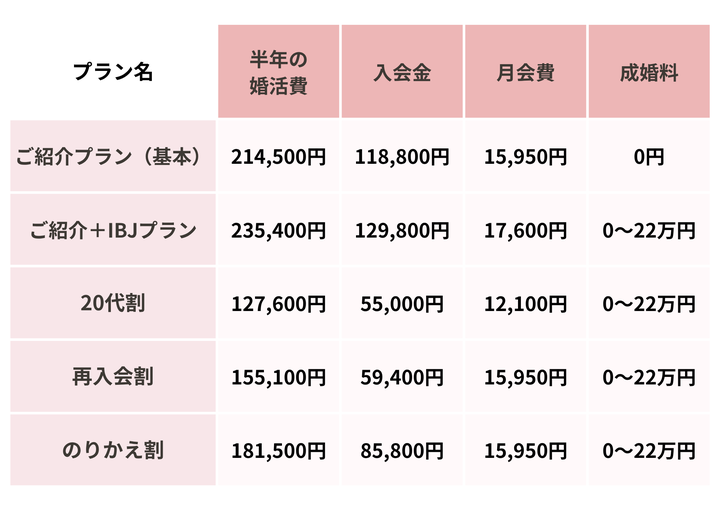 IBJプランの場合、IBJ会員との成婚の場合にのみ成婚料がかかる仕組みです。