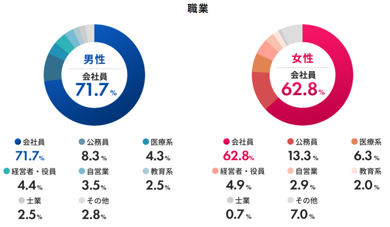 30代を中心に、収入や職の安定した真剣に結婚を考えている男女が多く集まっています。